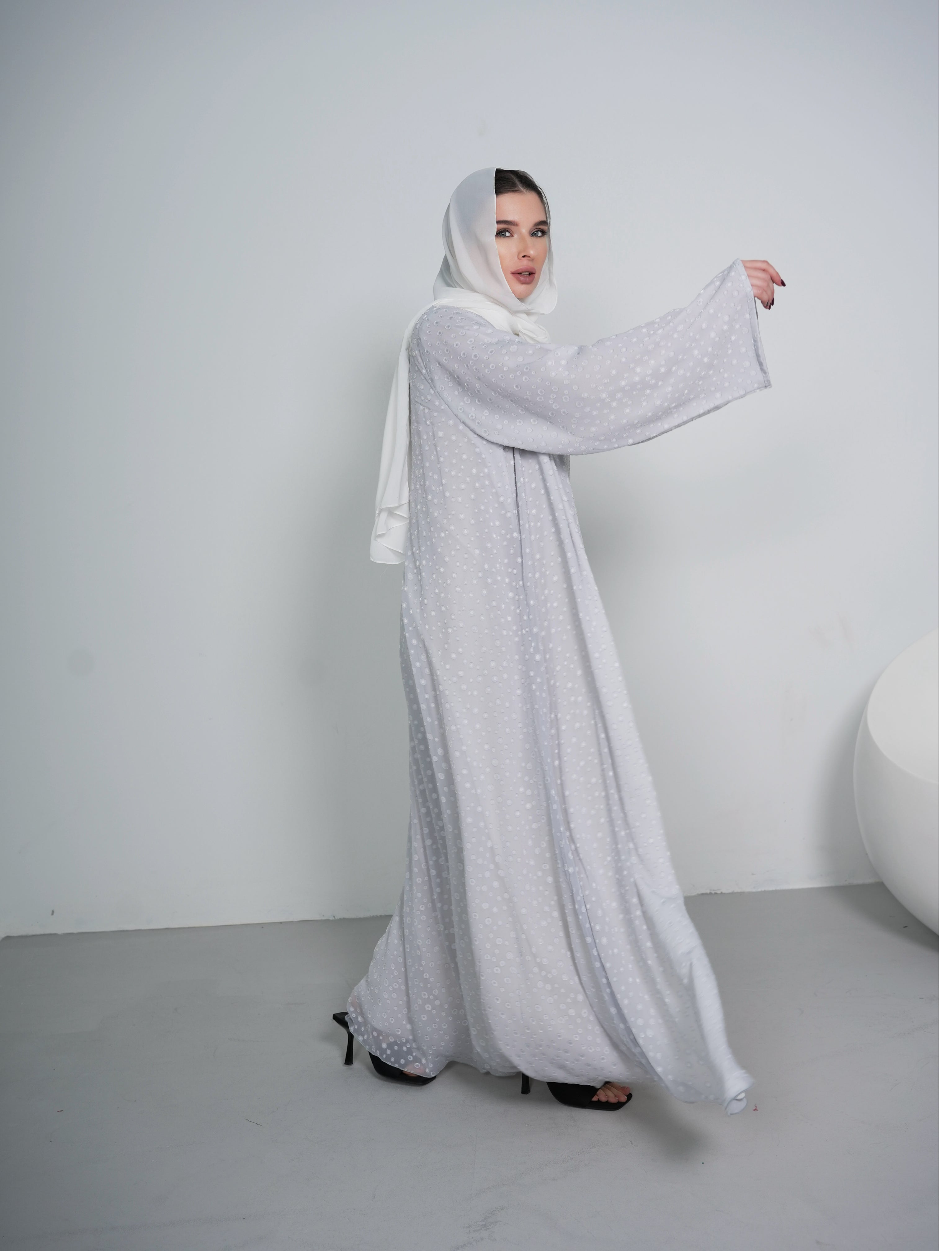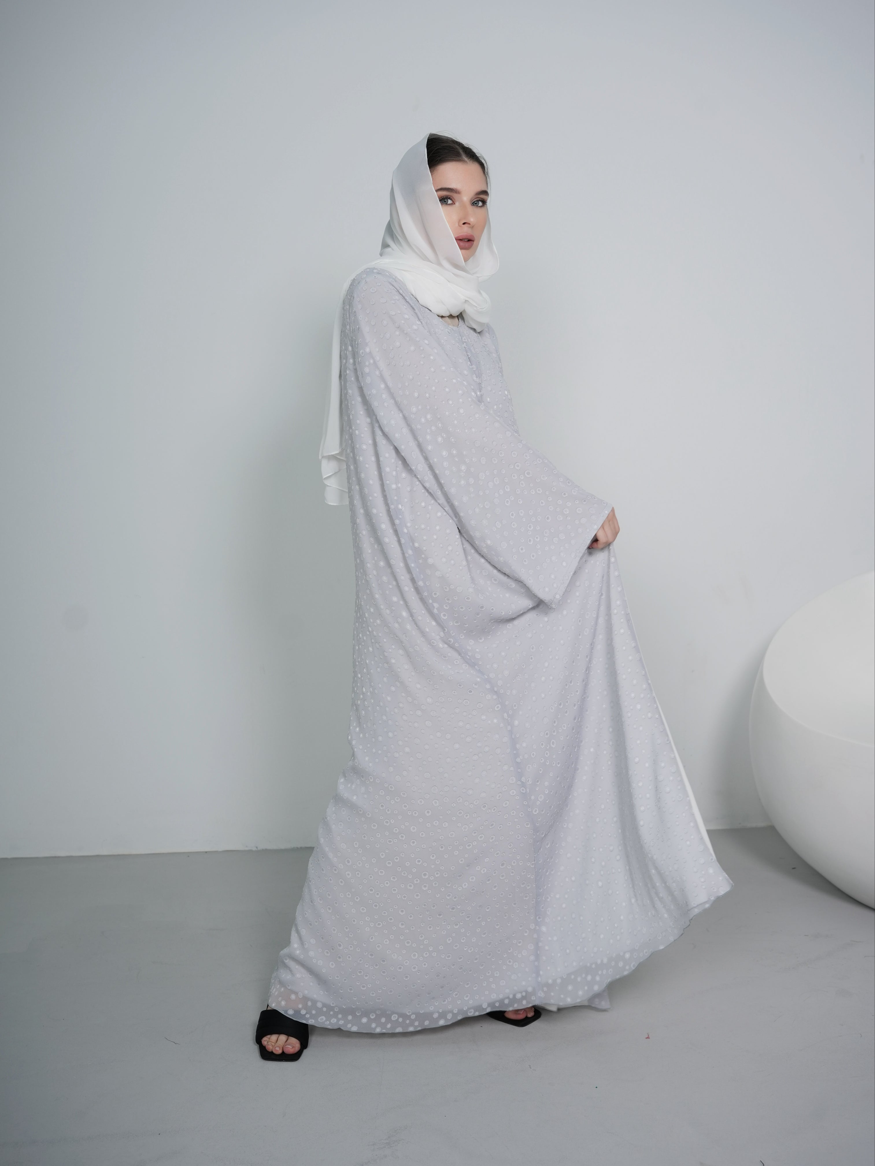 Add a touch of elegance to your wardrobe with our Women's Pearl Print Chiffon Abaya, designed for versatile styling and timeless beauty. Made from lightweight, breathable chiffon, this abaya features a delicate pearl-inspired print that adds subtle charm and sophistication to your look.