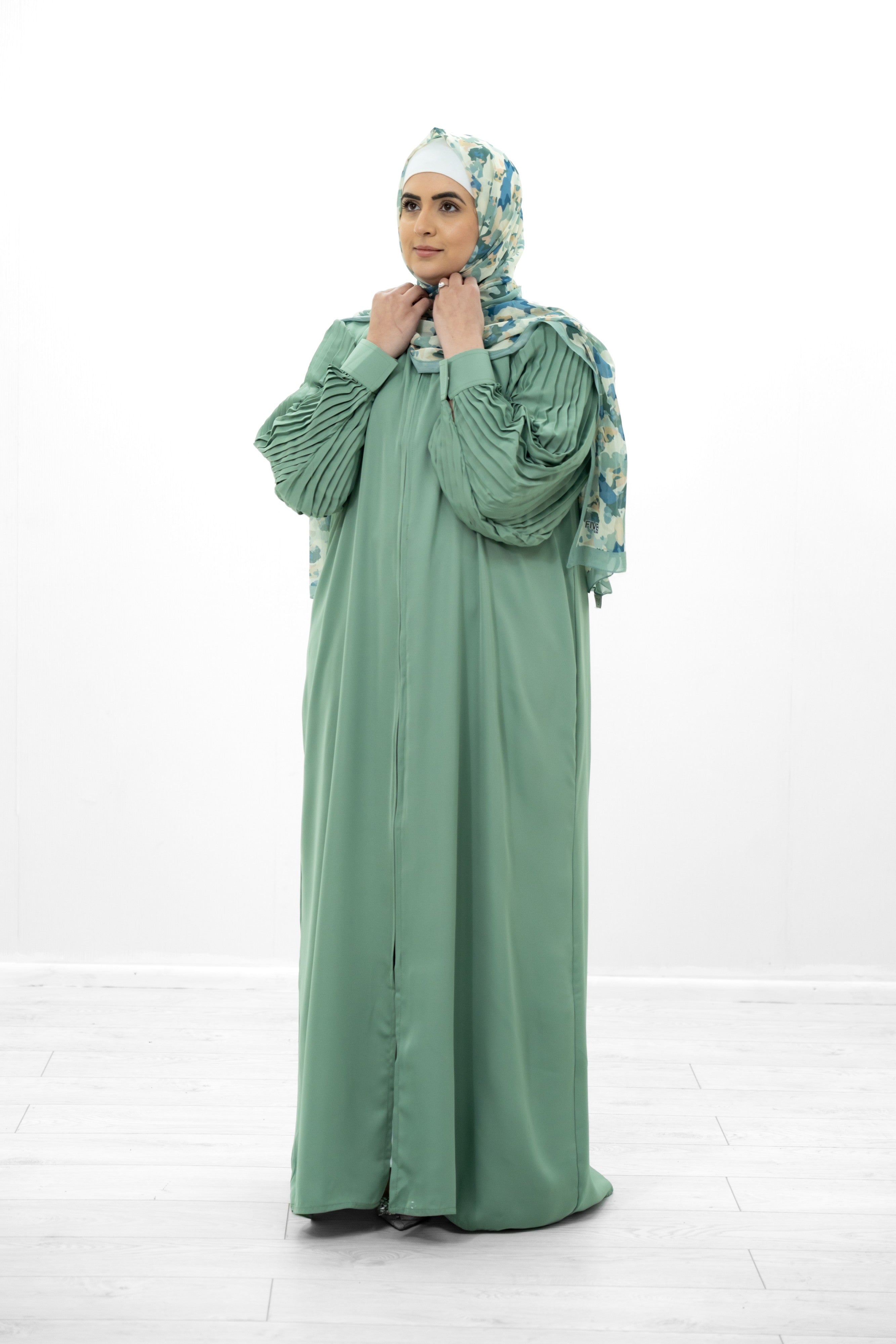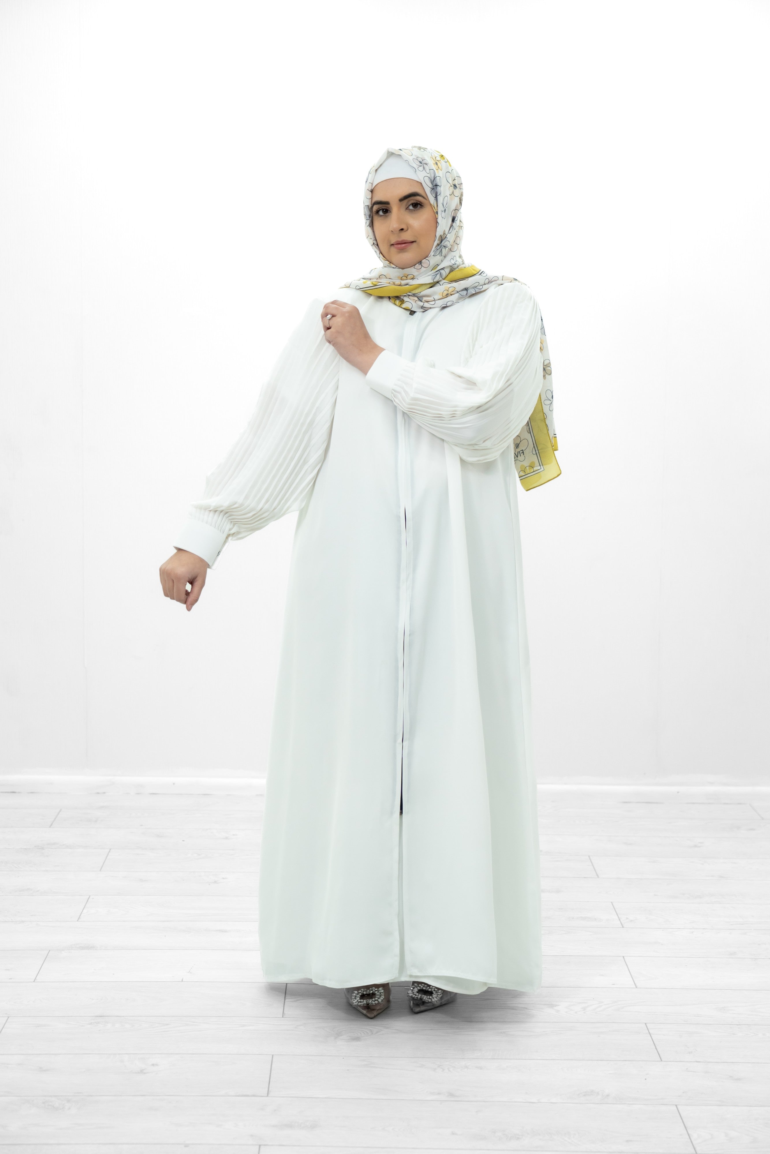 Embrace elegance and modernity with this pleated sleeve abaya, designed to make you feel confident and graceful wherever you go. This abaya is sure to become a staple in your wardrobe.