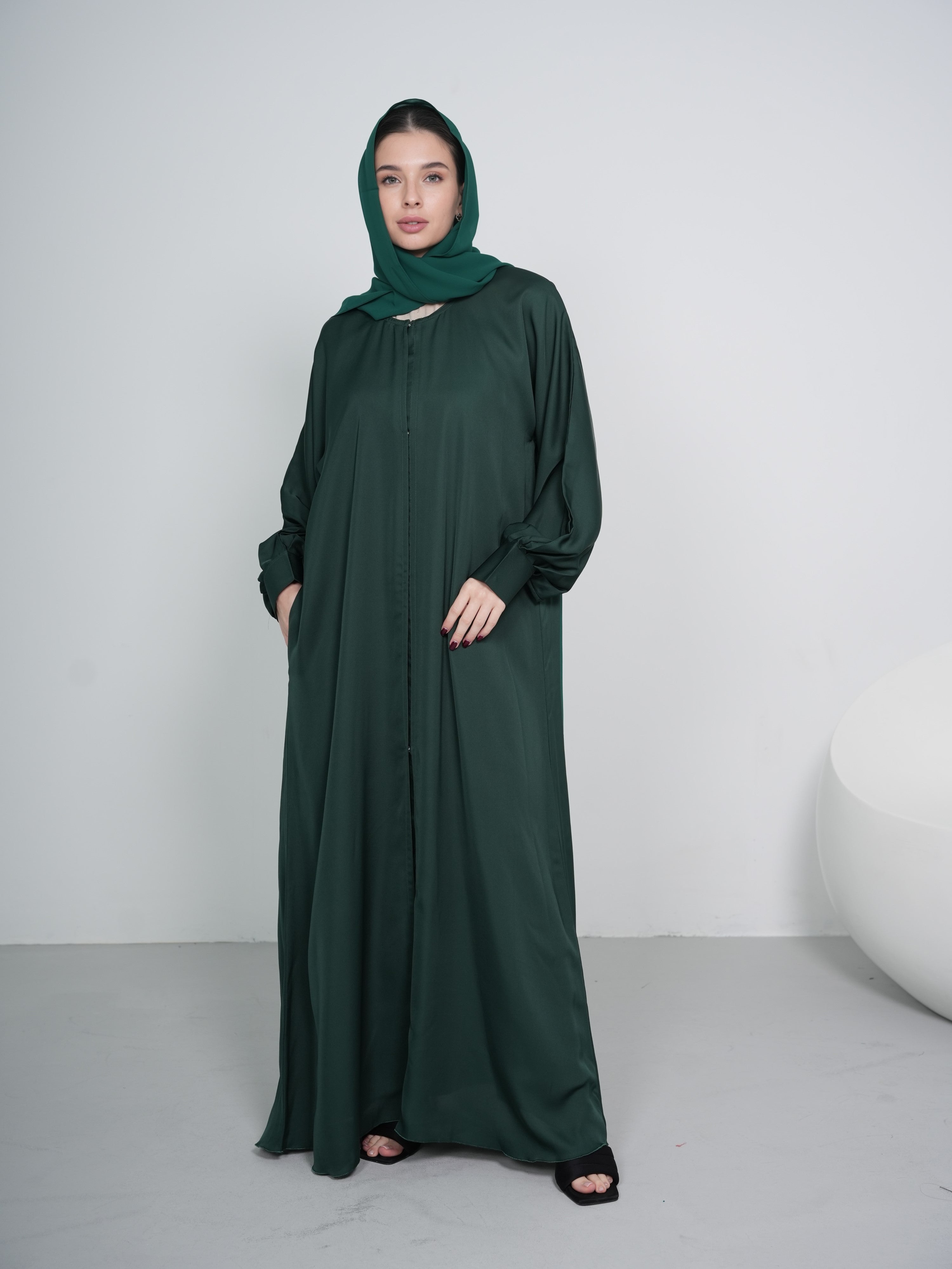 Elevate your wardrobe with this stunning women's silk abaya, designed to embody elegance, comfort, and versatility. Crafted from premium, breathable silk, this abaya offers a luxurious feel and graceful drape, making it an essential piece for every sophisticated woman.