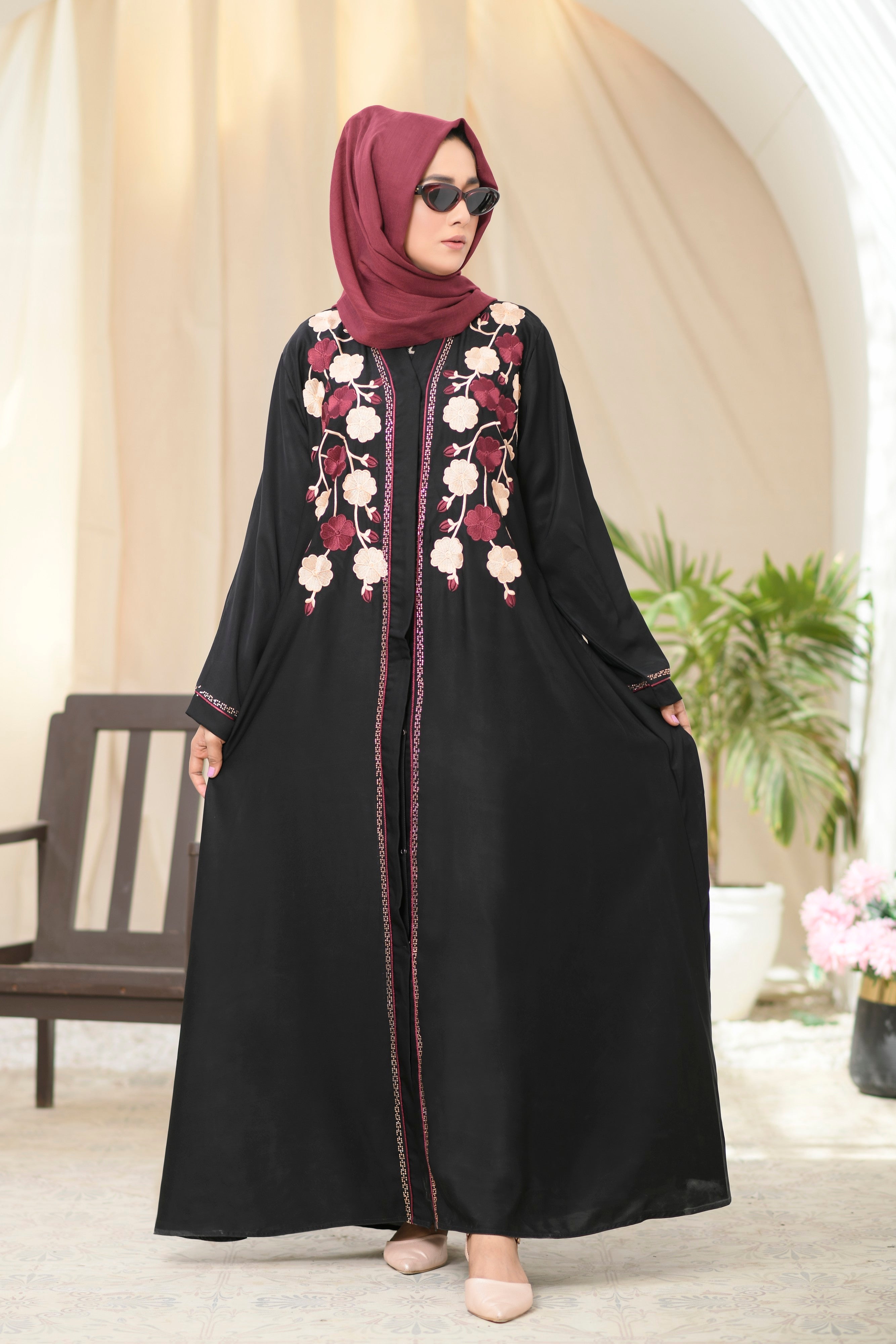 The button closure allows for versatile styling, making it easy to wear open or closed depending on your preference. The luxurious fabric and exquisite embroidery make this abaya the perfect choice for both formal and special occasions, allowing you to look and feel your best.