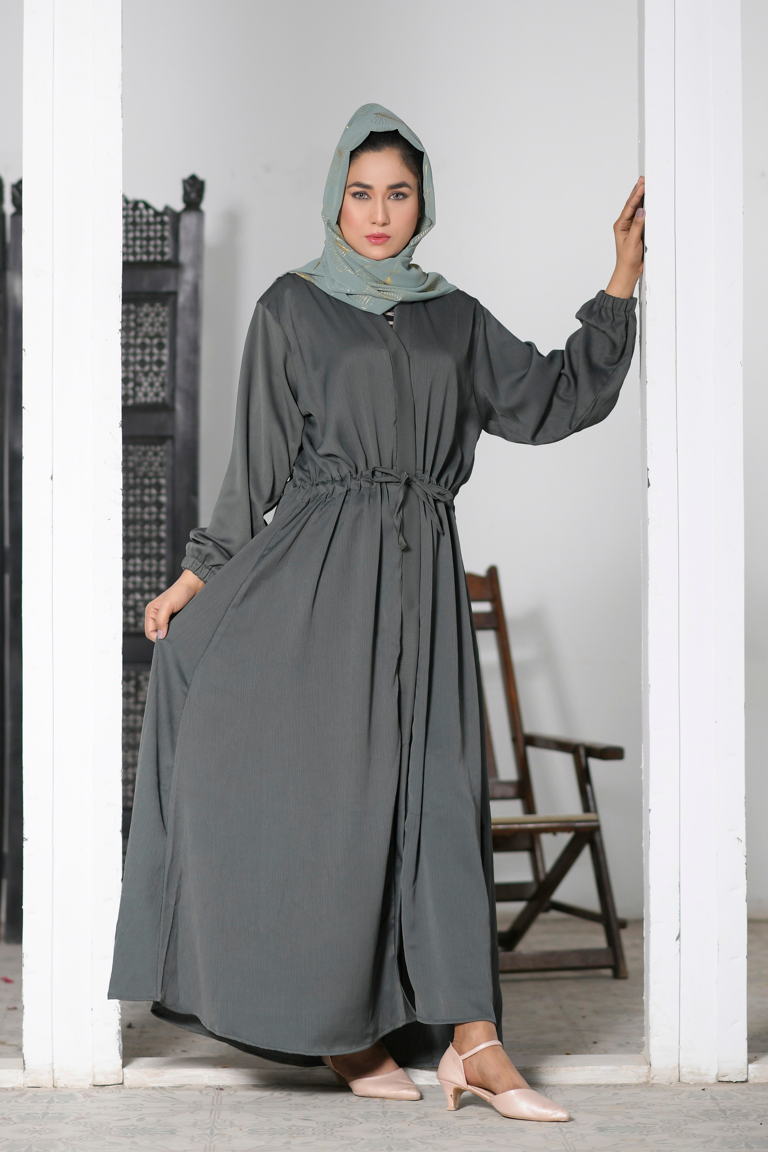 Discover the perfect blend of comfort and style with our Women’s V-Neck Drawstring Waist Abaya. Crafted from super soft material, this abaya is designed for everyday wear, offering both elegance and practicality. The V-neck design adds a flattering touch, while the drawstring waist allows for an adjustable fit, ensuring maximum comfort and a personalized silhouette.