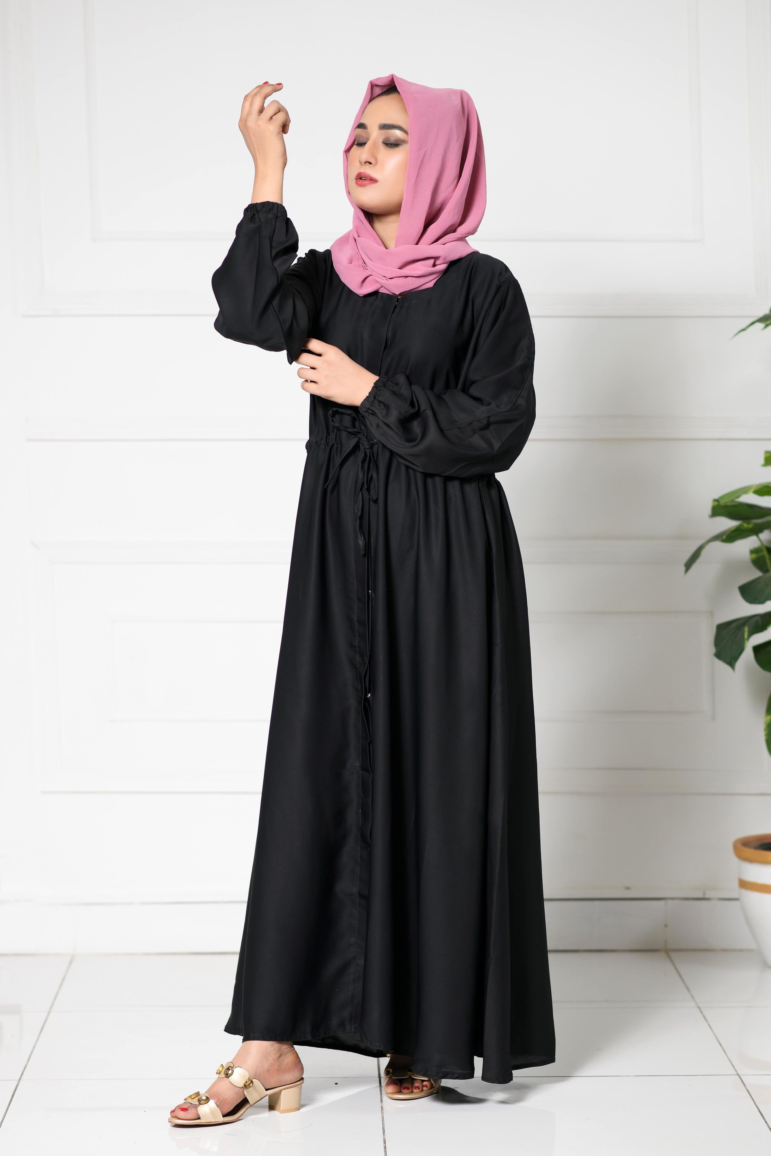 The Women’s V-Neck Drawstring Waist Abaya with Cuffed Sleeves is an ideal addition to any wardrobe. Its comfortable fabric, versatile design, and adjustable fit make it perfect for everyday use while maintaining a chic, modern look. Whether for casual or semi-formal occasions, this abaya is sure to become a go-to piece in your collection.