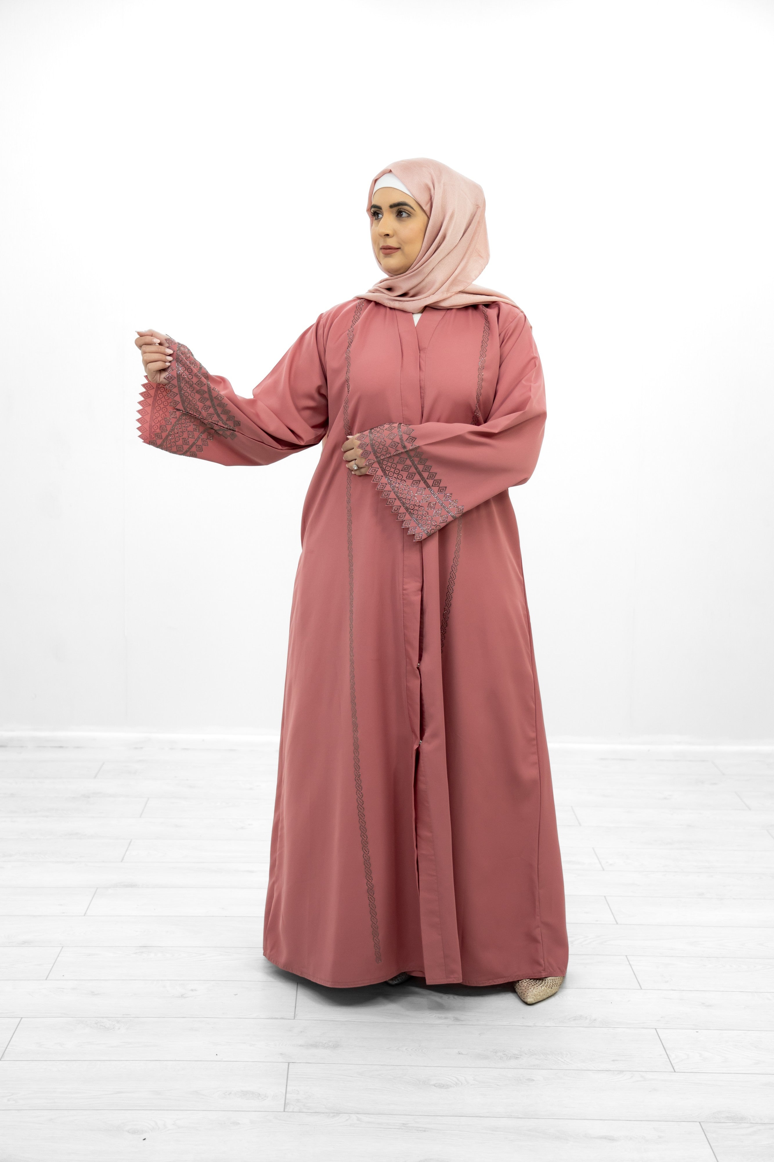 Pink Silk Embellished Abaya with Diamantes Sleeve